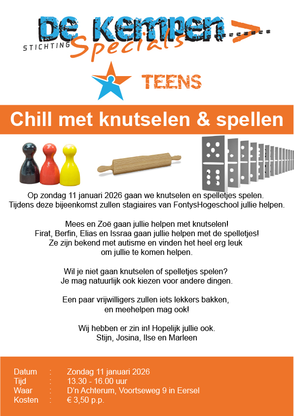 Op zondag 11 januari 2026 gaan we bij D’n Achterum knutselen en spelletjes spelen.