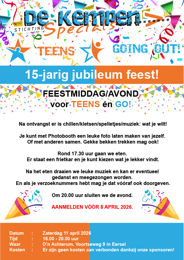 Lid worden van de TEENS is gratis. Daarna betaal je alleen voor de activiteiten waarvoor je je aanmeldt.