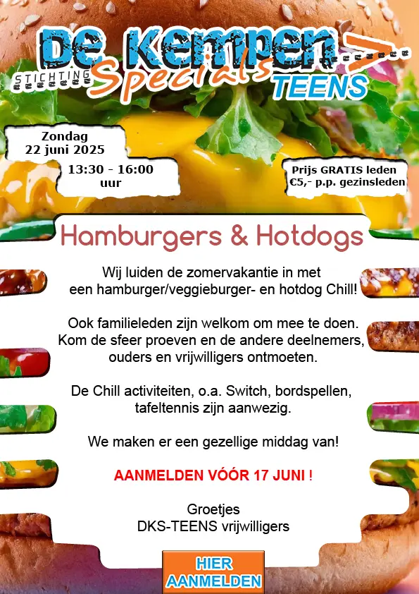 Wij luiden de zomervakantie in met een hamburger/veggieburger- en hotdog Chill! Ook familieleden zijn welkom om mee te doen. Kom…