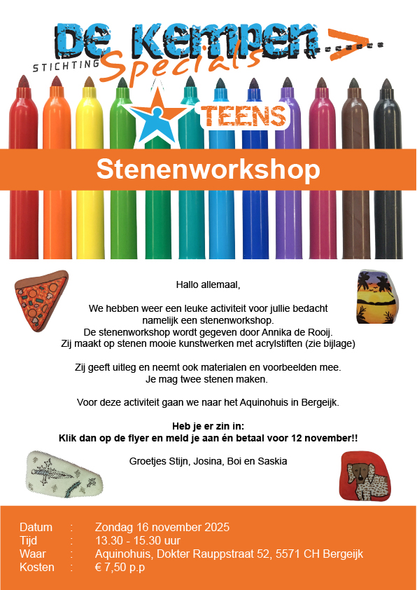 We hebben weer een leuke activiteit voor jullie bedacht namelijk een stenenworkshop.